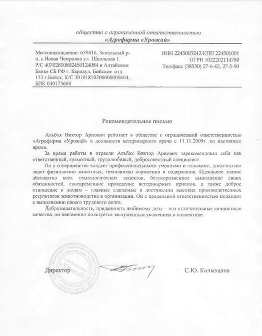 Ведущий ветеринарный врач ОГУ «Екатериновская районная СББЖ» (р. п. Екатериновка, Екатериновский р-н, Саратовская обл.)